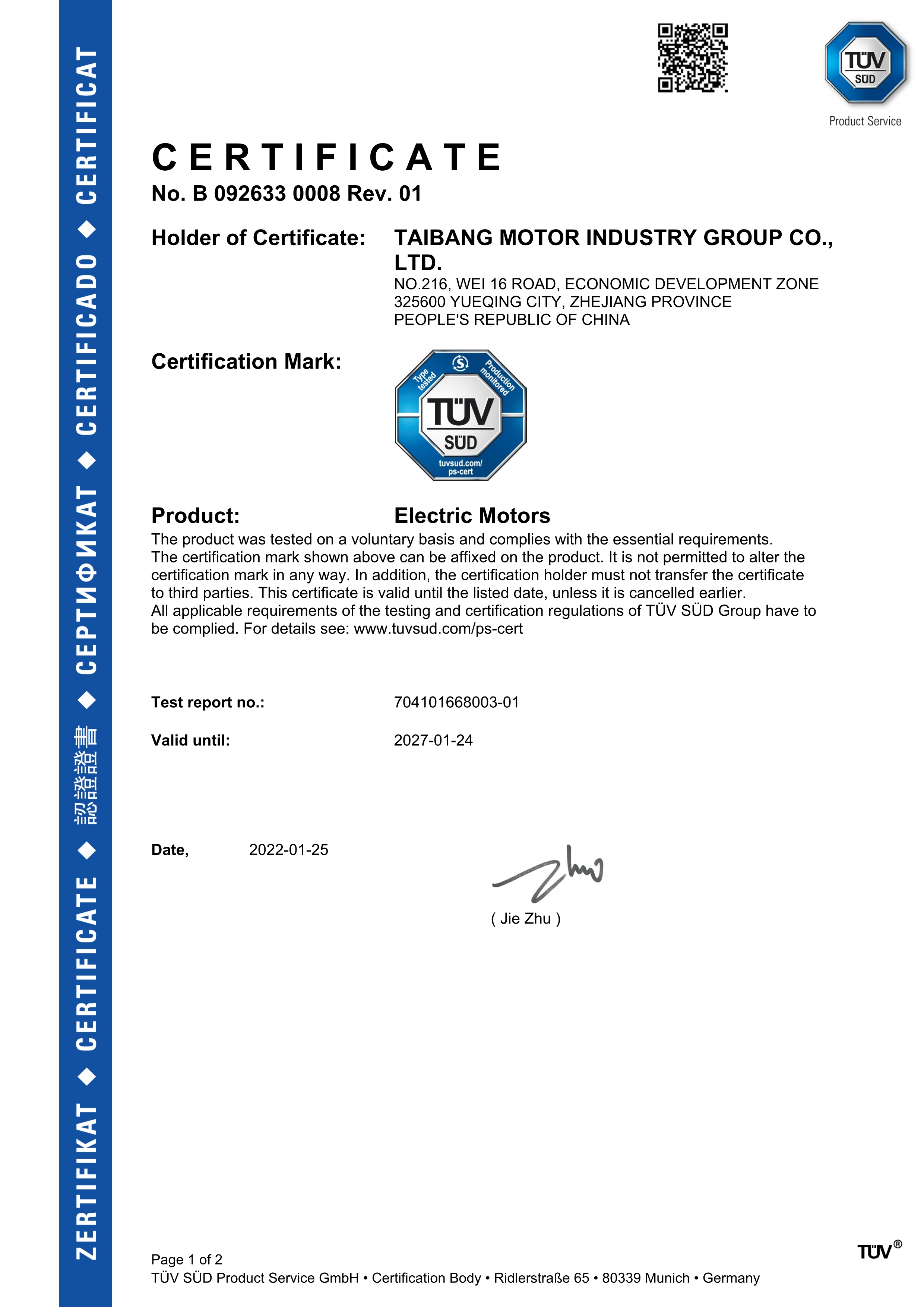 II型自愿认证证书-齿轮减速箱用三相异步电动机