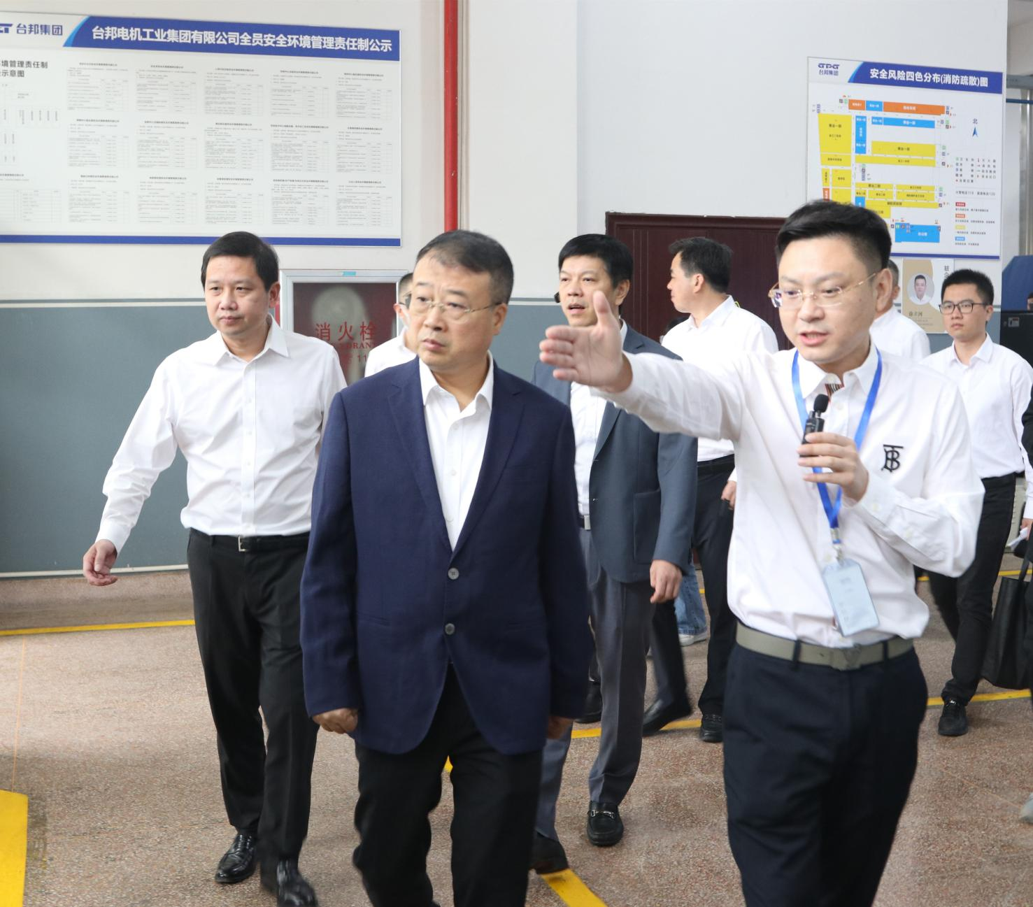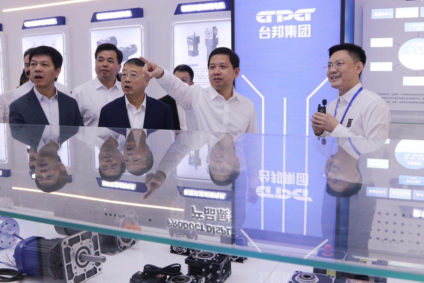 在展示厅里,集团副总裁陈钦俞与代表团一行亲切交谈,集团副总裁陈钦俞向代表团详细介绍了“台邦机器人核心部件项目”“精密减速器项目”“六轴机器人”“高精密行星减速器”等项目,台邦集团作为省152重点工程项目企业、省级精密传动技术研究企业、温商重大项目回归企业,在推动企业智能化转型升级上,公司每年投入销售收入4%-5%用于技术改造,将科技创新融入在企业研发、生产、经营、管理、销售等方方面面,通过创新打造数字化车间;也通过创新打造智能装备制造业核心部件,成功突破解决“卡脖子”难题。