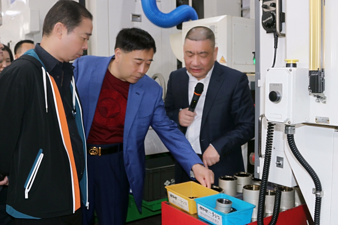 在生产加工区,考察团一行在陈春良董事长的带领下,穿行于台邦精密行星金工生产线、自动化生产线和智能化技改区。