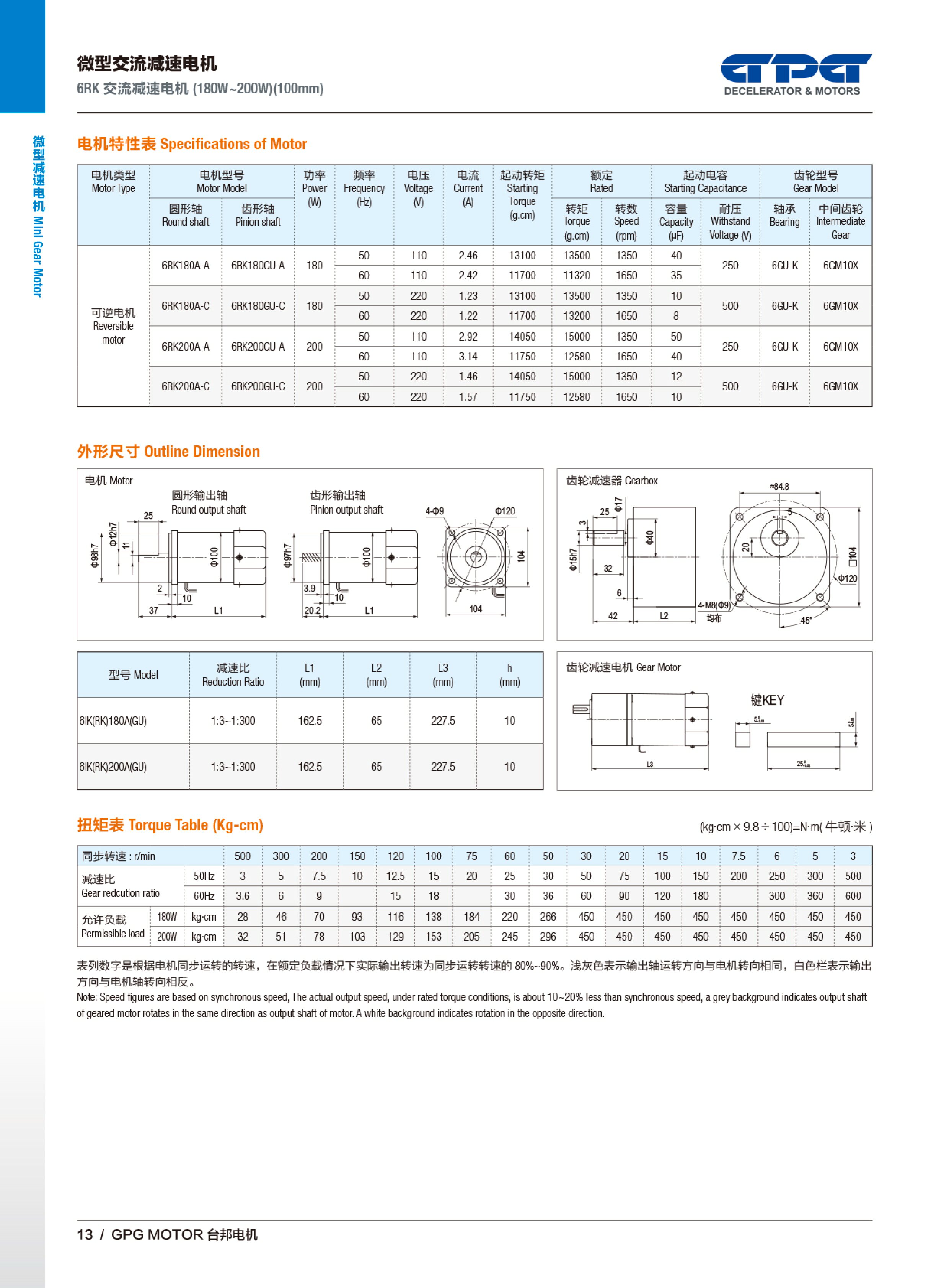 6IK/6RK 交流减速马达(180W-250W)(100mm)