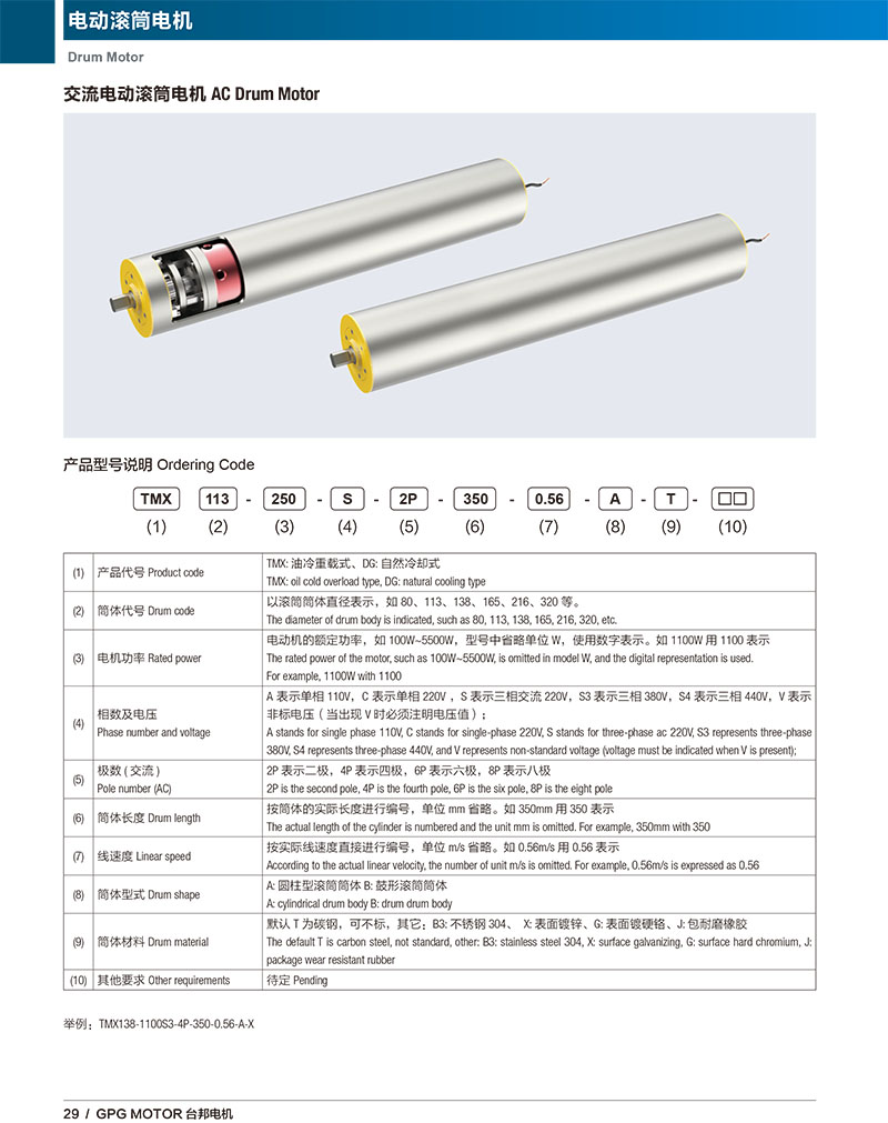 TMX系列重载式交流电动滚筒分别是由交流电动机、行星减速箱和电机