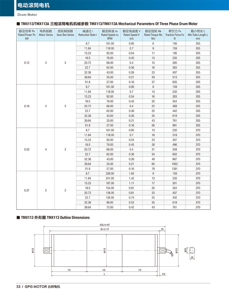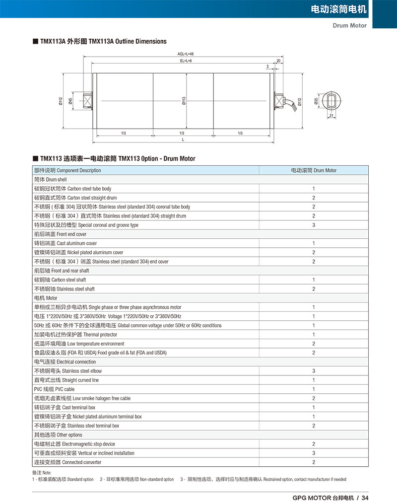 对传动系统的空间、低噪声和大功率有特殊要求的输送设备可使用TMX113,