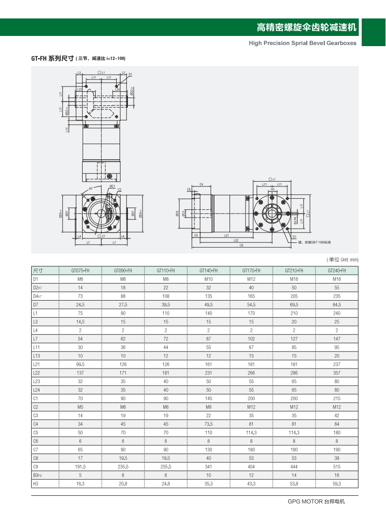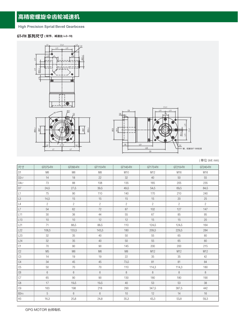 ●采用蜗线伞齿轮,经设计,接触齿面负载均一、容许高扭矩输出。
